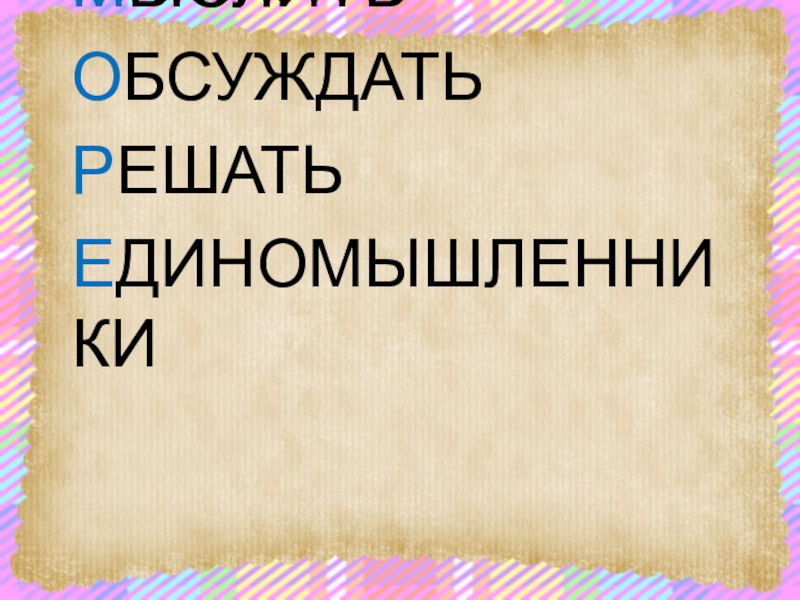 МЫСЛИТЬОБСУЖДАТЬРЕШАТЬЕДИНОМЫШЛЕННИКИ