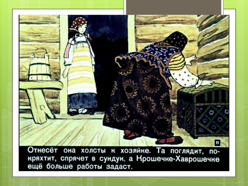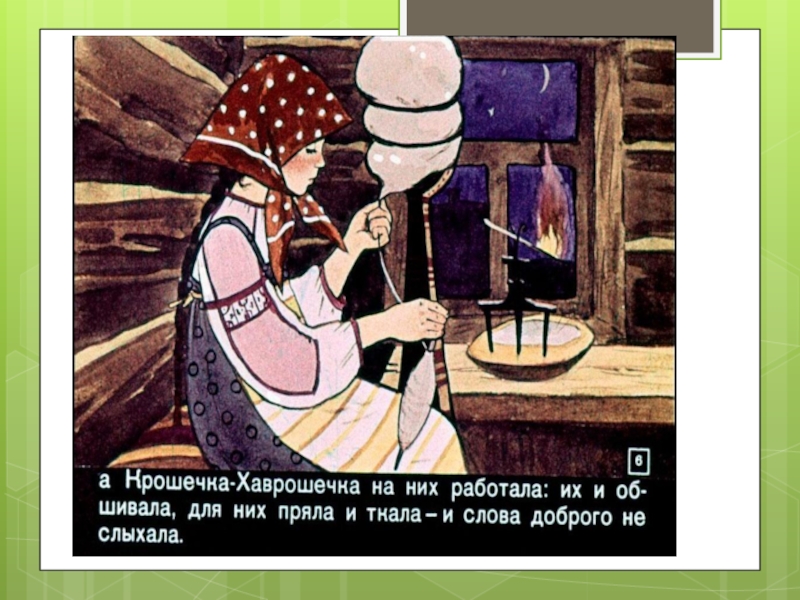 —Жила у злых людей девочка Хаврошечка. Она была...