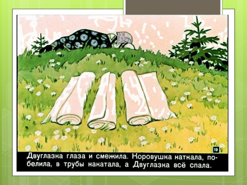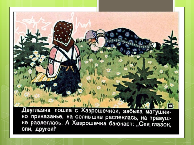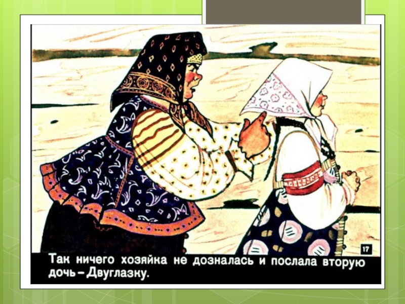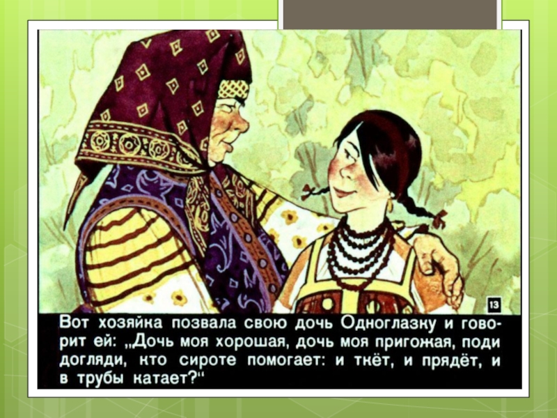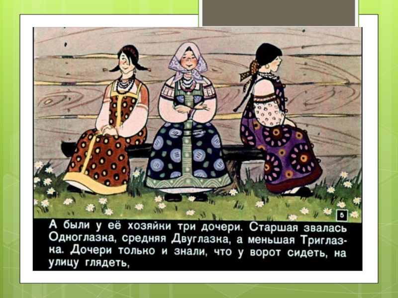 4. расширить и активизировать словарный запас: сирота, Одноглазка, Двухглазка, Трехглазка, рябая корова, журить, пять пудов, распеклась, листвицы шумят золотые, затрогал девушек, барин; в добре поживать, лиха не знать.