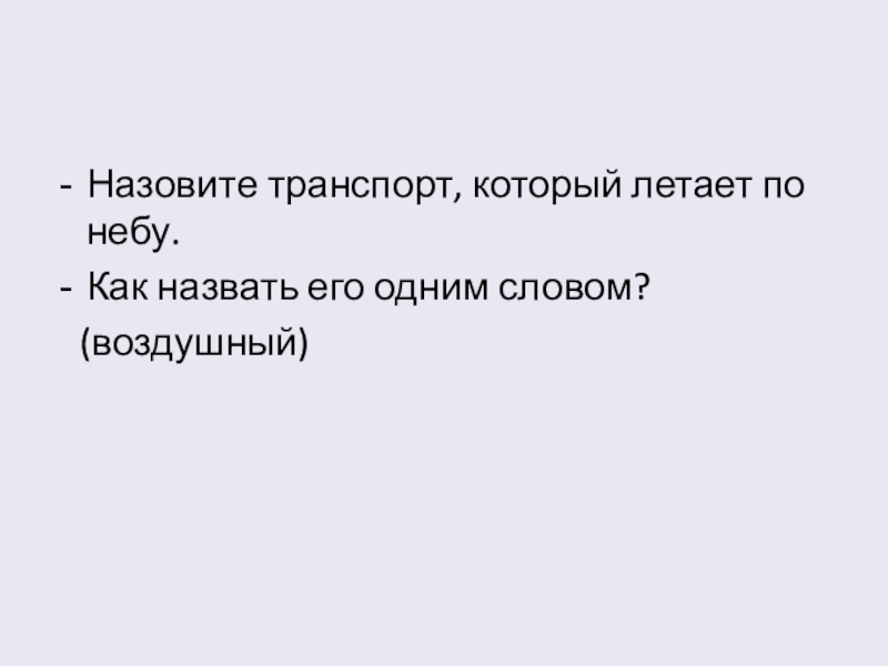 Назовите транспорт, который летает по небу.Как назвать его одним словом?  (воздушный)