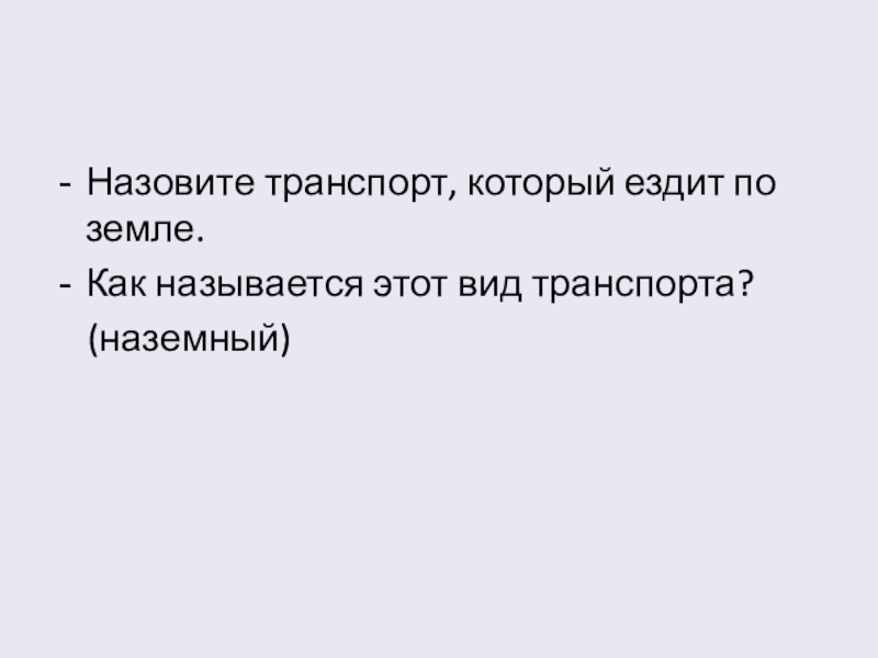 Назовите транспорт, который ездит по земле.