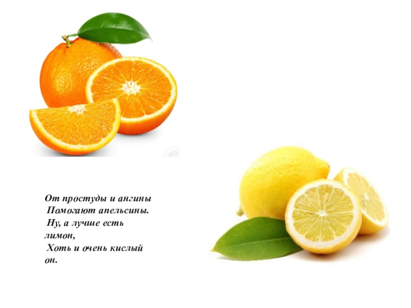 От простуды и ангины Помогают апельсины. Ну, а лучше есть лимон, Хоть и очень кислый он.