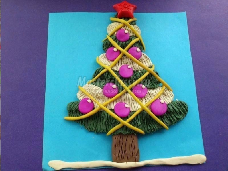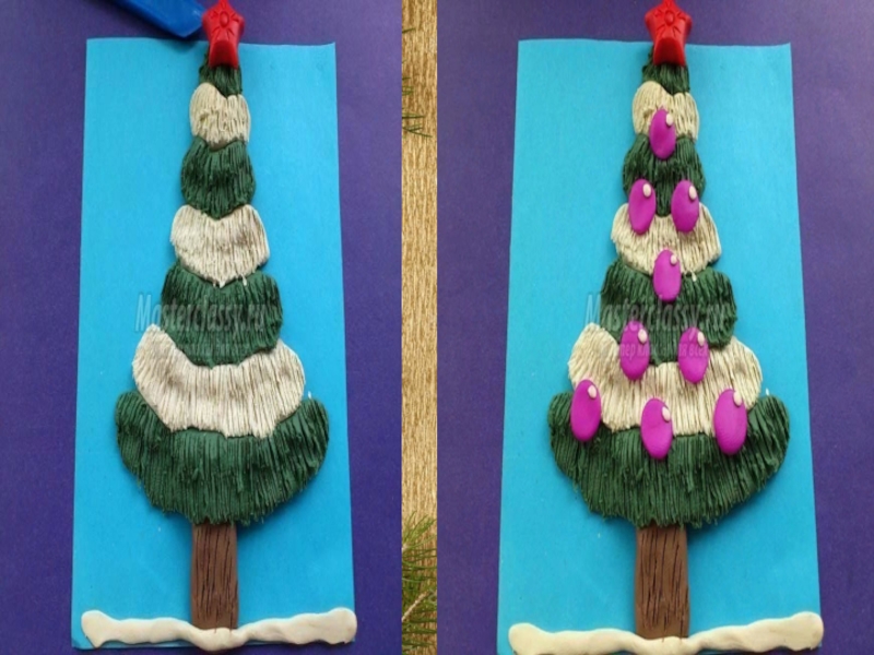 Изготовить новогоднюю ёлочку из пластилина