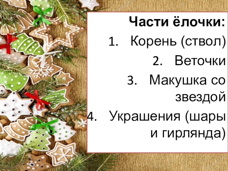 Слайд 5Части ёлочки: