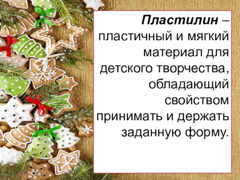 Слайд 4Пластилин – пластичный и мягкий материал для детского творчества, обладающий свойством