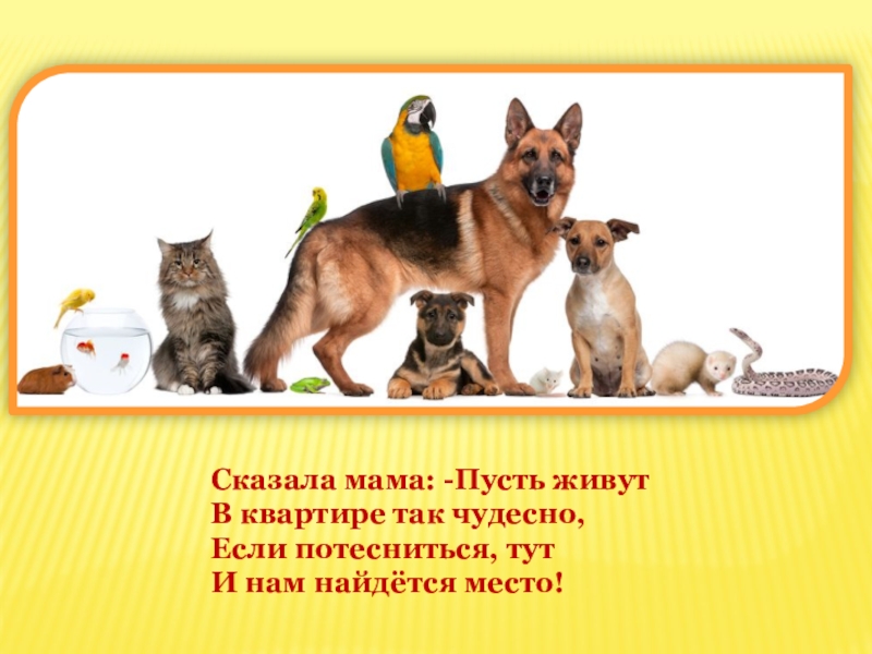 Слайд 10Сказала мама: -Пусть живут В квартире так чудесно, Если потесниться, тут И нам найдётся