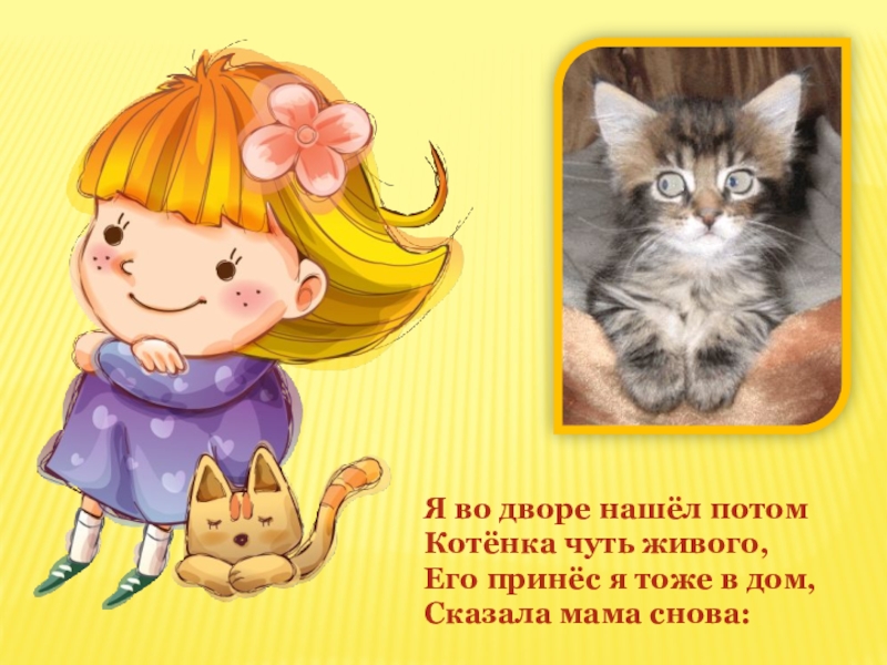 Слайд 5Я во дворе нашёл потом Котёнка чуть живого, Его принёс я