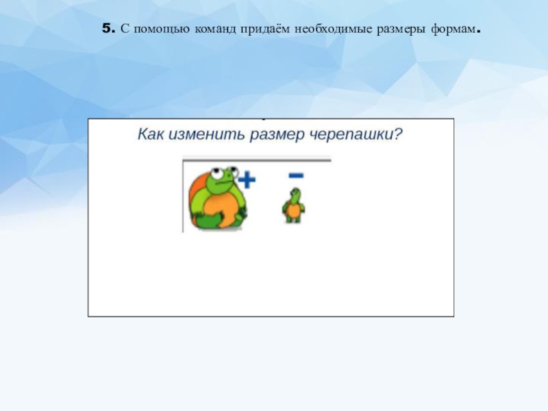 Слайд 175. С помощью команд придаём необходимые размеры формам.