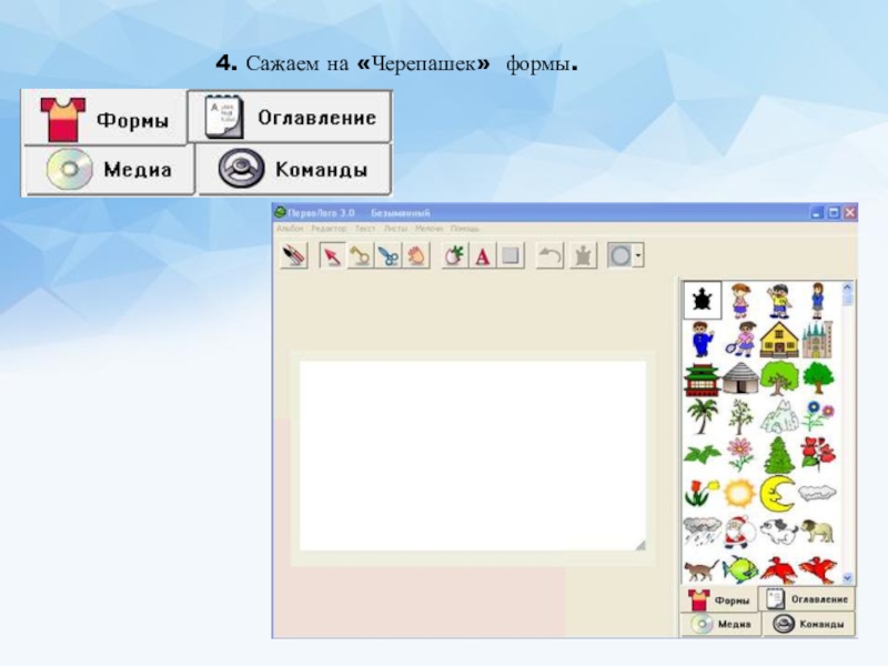 Слайд 153. Берём инструмент «новая черепашка» и переносим её в нужное место