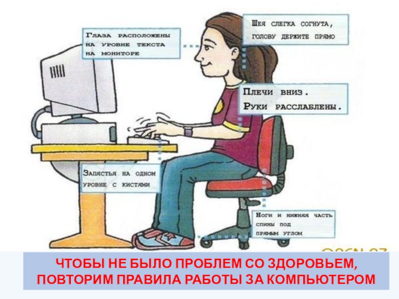 ЧТОБЫ НЕ БЫЛО ПРОБЛЕМ СО ЗДОРОВЬЕМ, ПОВТОРИМ ПРАВИЛА РАБОТЫ ЗА КОМПЬЮТЕРОМ