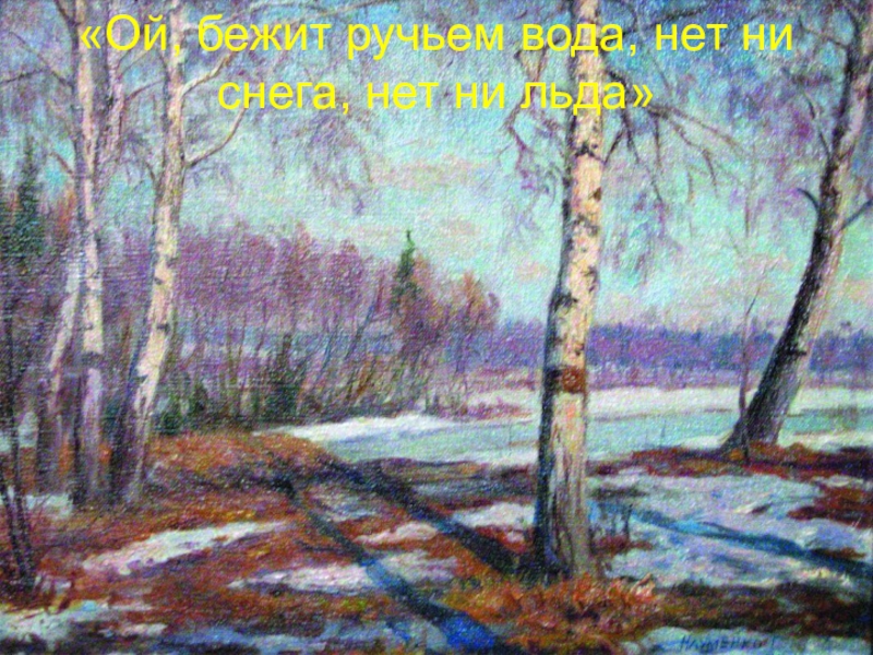 Слайд 4«Ой, бежит ручьем вода, нет ни снега, нет ни льда»