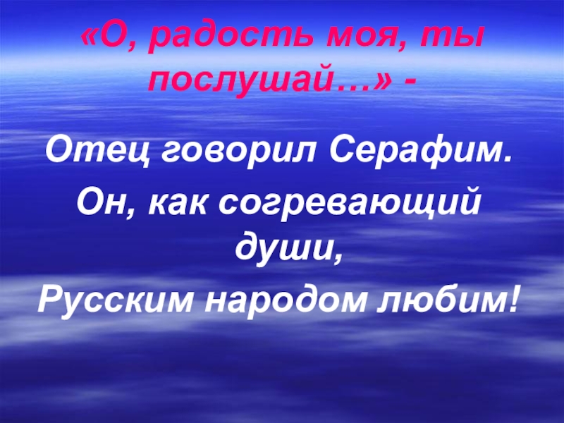 «О, радость моя, ты послушай…» -Отец говорил Серафим.Он, как согревающий души,Русским народом любим!