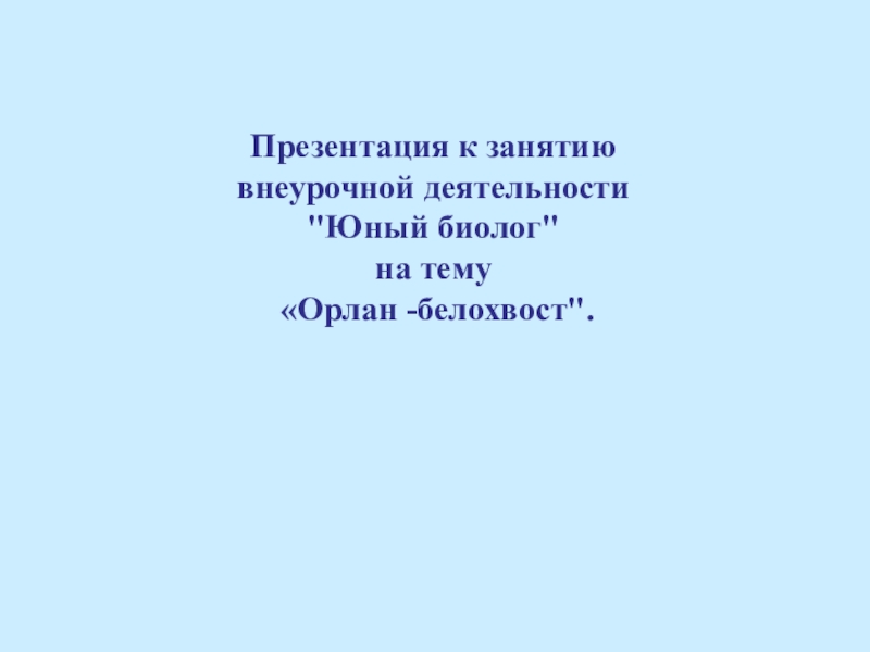 Презентация, доклад к занятию внеурочной деятельности Юный биолог на тему Орлан-белохвост.