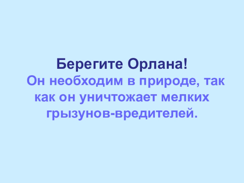 Слайд 12Берегите Орлана! Он необходим в природе, так как он уничтожает мелких