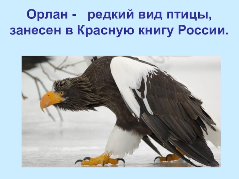 Слайд 4Орлан -  редкий вид птицы, занесен в Красную книгу России.