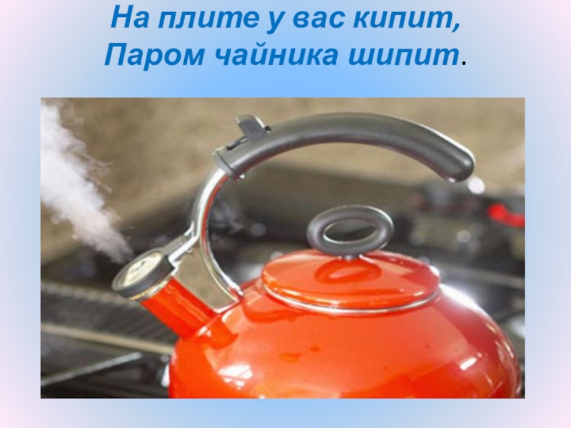 Слайд 18На плите у вас кипит, Паром чайника шипит.