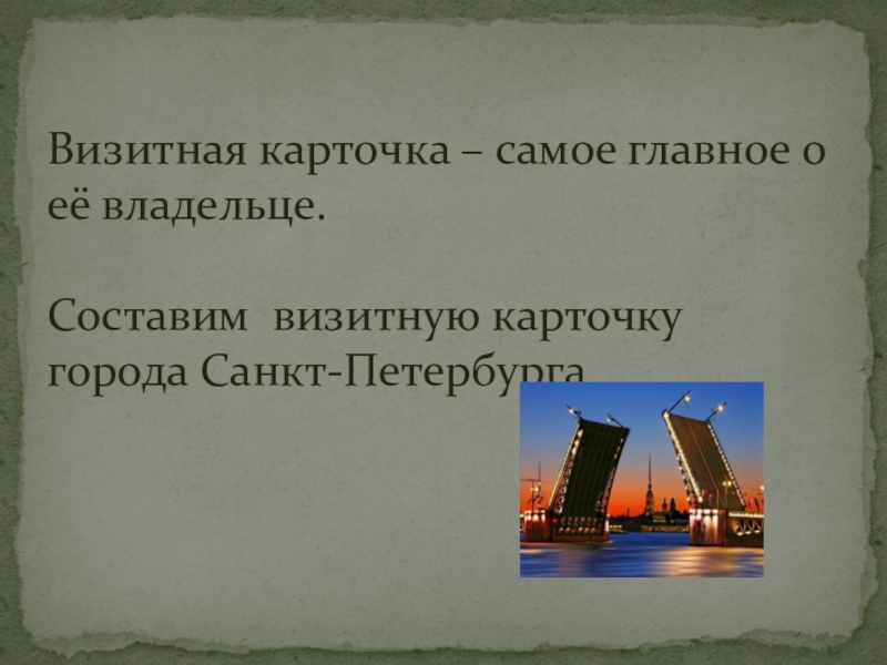Визитная карточка – самое главное о её владельце.  Составим визитную карточку города Санкт-Петербурга