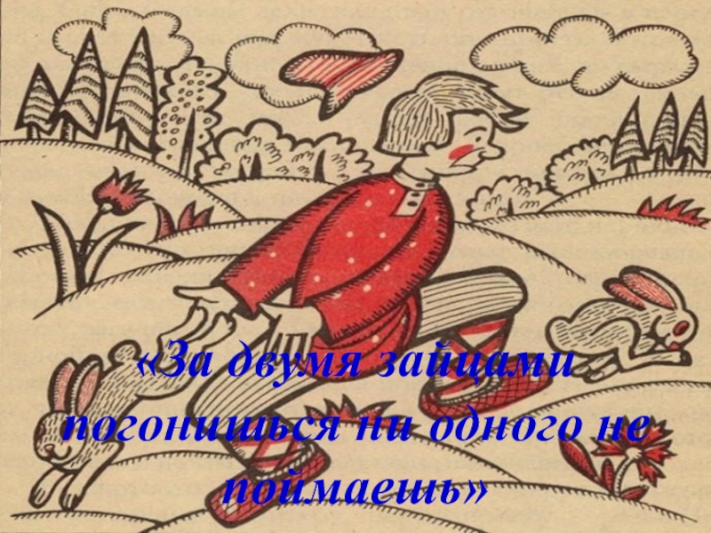 Слайд 7«За двумя зайцами погонишься ни одного не поймаешь»