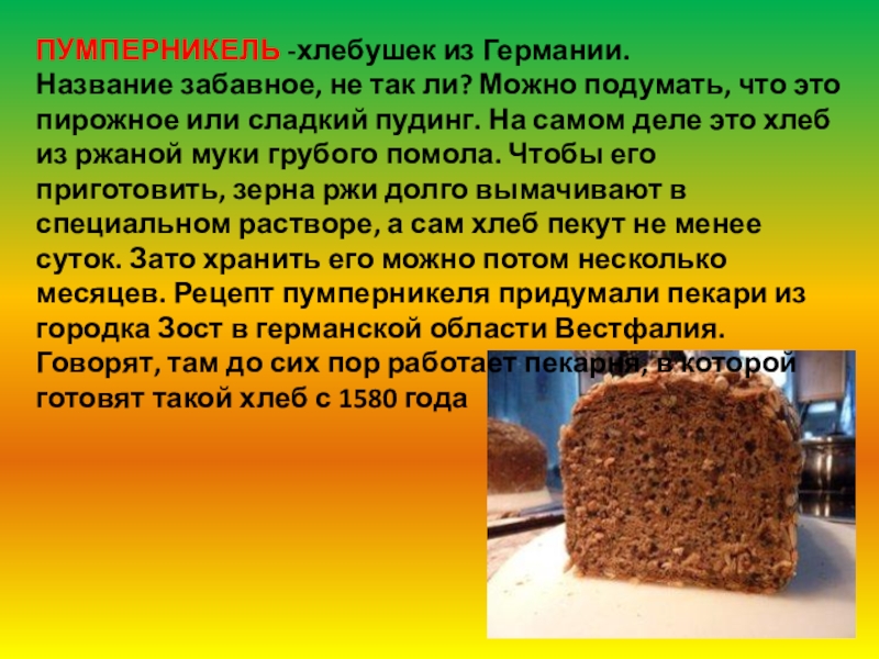 Слайд 47ПУМПЕРНИКЕЛЬ -хлебушек из Германии.