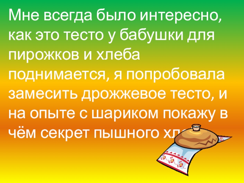 Слайд 24Мне всегда было интересно, как это тесто у бабушки для пирожков