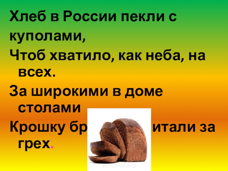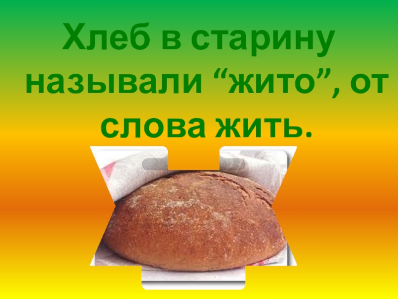 Слайд 10Хлеб в старину называли “жито”, от слова жить.