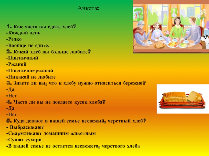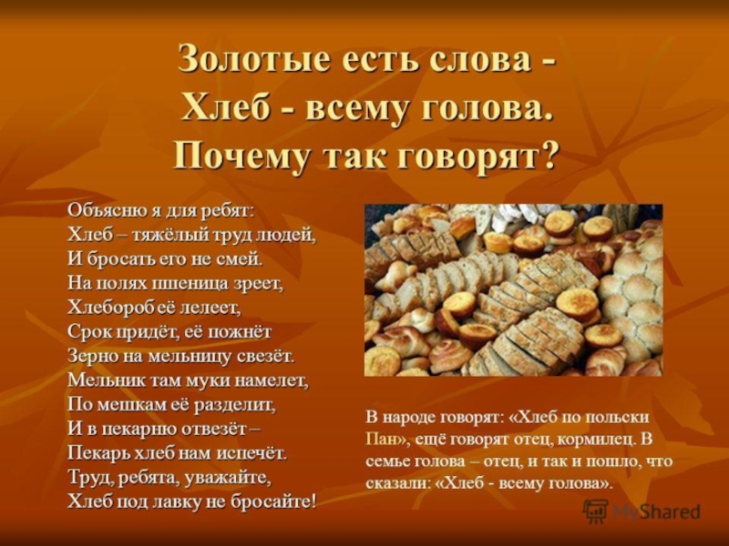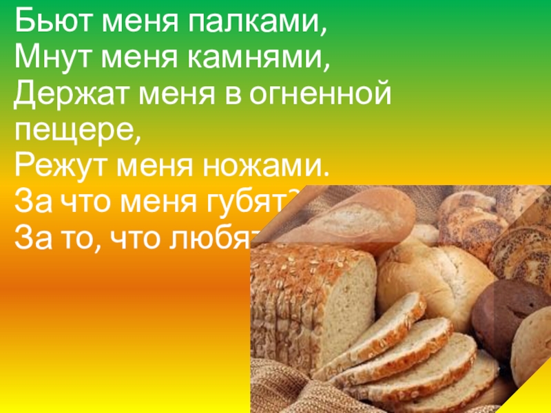 хлеба, и все с ней согласились. Хлеб появился, когда древние люди проводили разные опыты с зернами пшеницы.