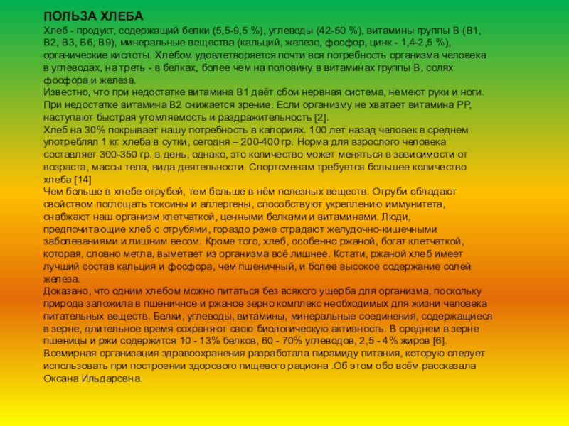 Слайд 40ПОЛЬЗА ХЛЕБА