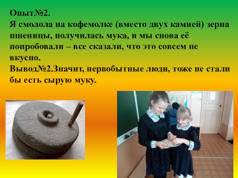 Вывод№2.Значит, первобытные люди, тоже не стали бы есть сырую муку.