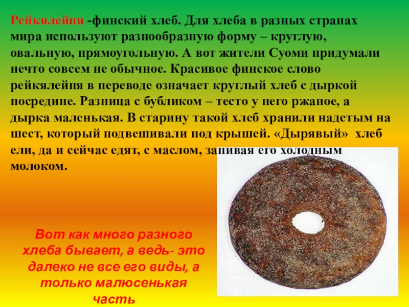 Слайд 48Рейкялейпя -финский хлеб. Для хлеба в разных странах мира используют разнообразную