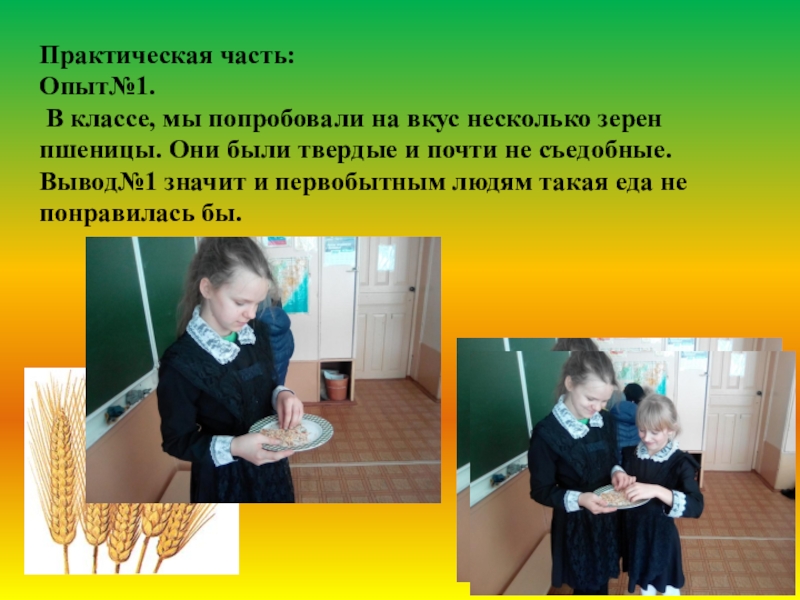 В классе, мы попробовали на вкус несколько зерен пшеницы. Они