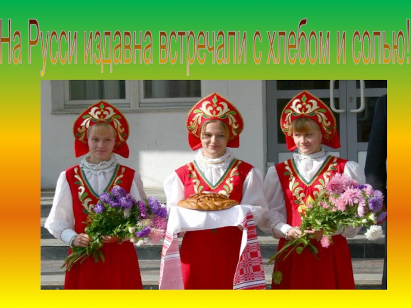 Слайд 64На Русси издавна встречали с хлебом и солью!