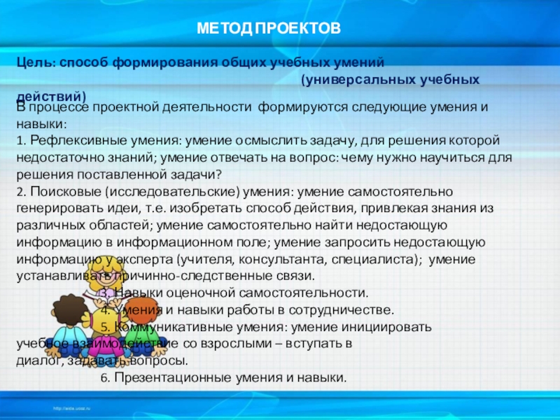 В процессе проектной деятельности формируются следующие умения и навыки: