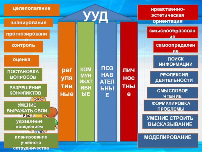 1. Рефлексивные умения: умение осмыслить задачу, для решения которой недостаточно знаний; умение отвечать на вопрос: чему нужно научиться для решения поставленной задачи?