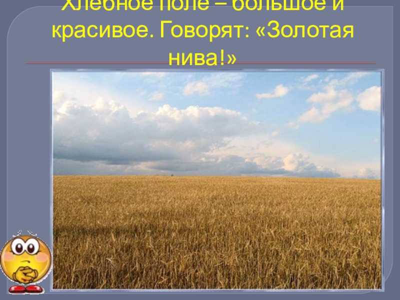 Слайд 4Хлебное поле – большое и красивое. Говорят: «Золотая нива!»