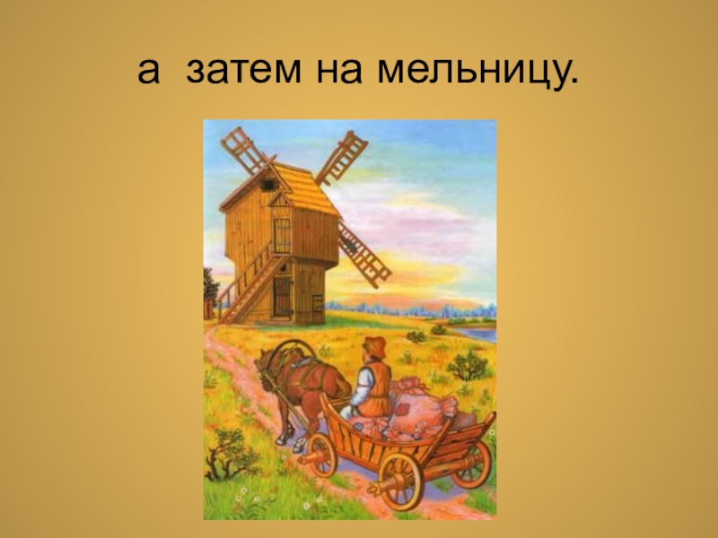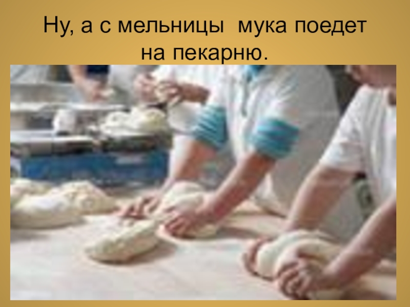Слайд 28Ну, а с мельницы мука поедет на пекарню.