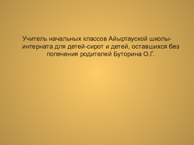 Учитель начальных классов Айыртауской школы-интерната для детей-сирот и детей, оставшихся без попечения родителей Буторина О.Г.