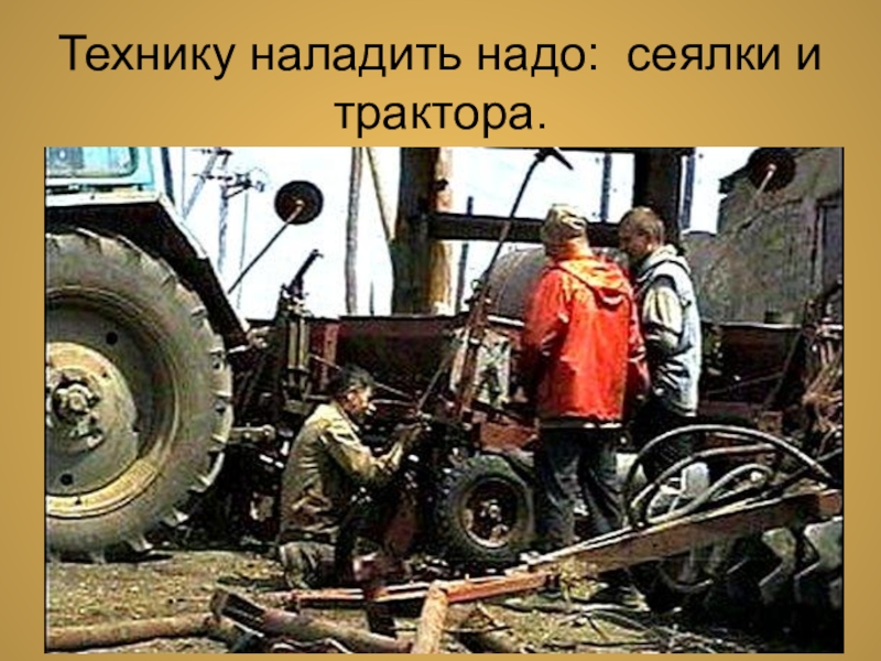 Слайд 40Технику наладить надо: сеялки и трактора.