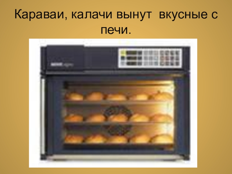 Слайд 33Караваи, калачи вынут вкусные с печи.