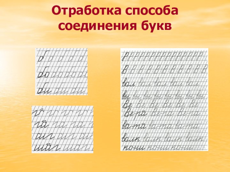 приемы соединений букв (без отрыва, с отрывом, сверху, снизу и так далее);