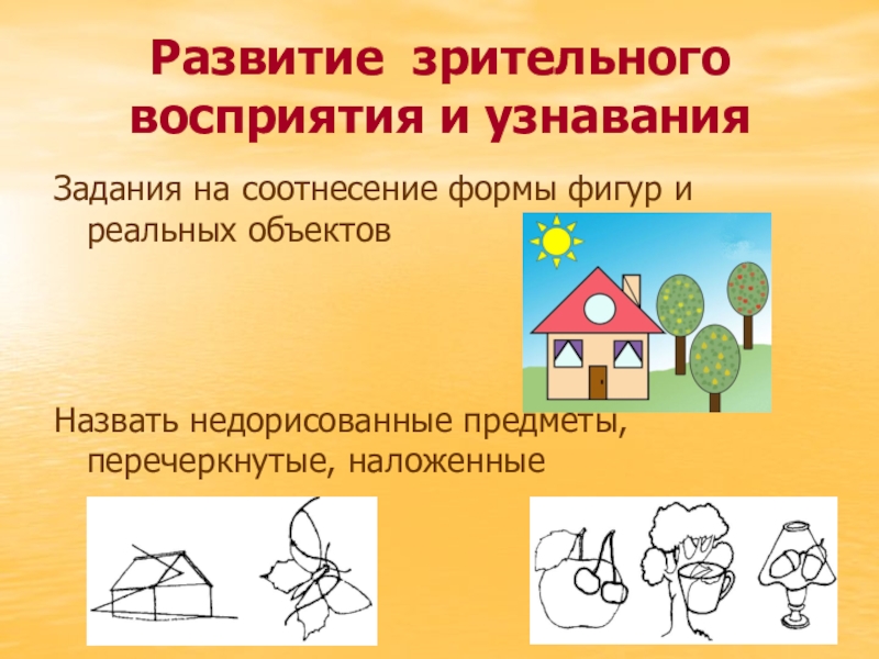 Назвать недорисованные предметы, перечеркнутые, наложенные