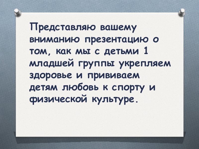 Представляю вашему вниманию презентацию о том, как мы с детьми 1 младшей группы укрепляем здоровье и прививаем детям любовь к спорту и физической культуре.
