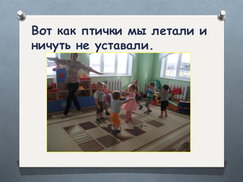 Слайд 4Вот как птички мы летали и ничуть не уставали.