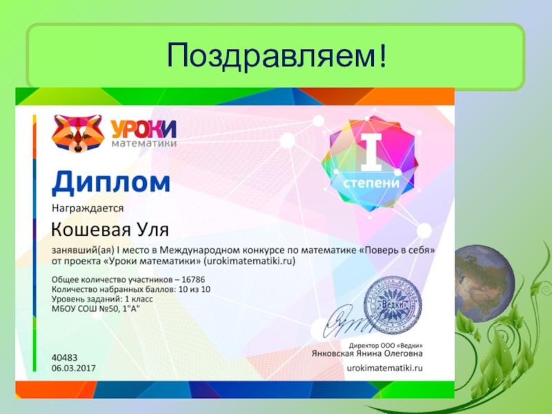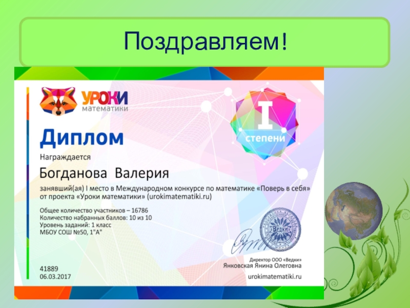 Это сайт презентаций, где можно хранить и обмениваться своими презентациями, докладами, проектами, шаблонами в формате PowerPoint с другими пользователями. Мы помогаем школьникам, студентам, учителям, преподавателям хранить и обмениваться учебными материалами.