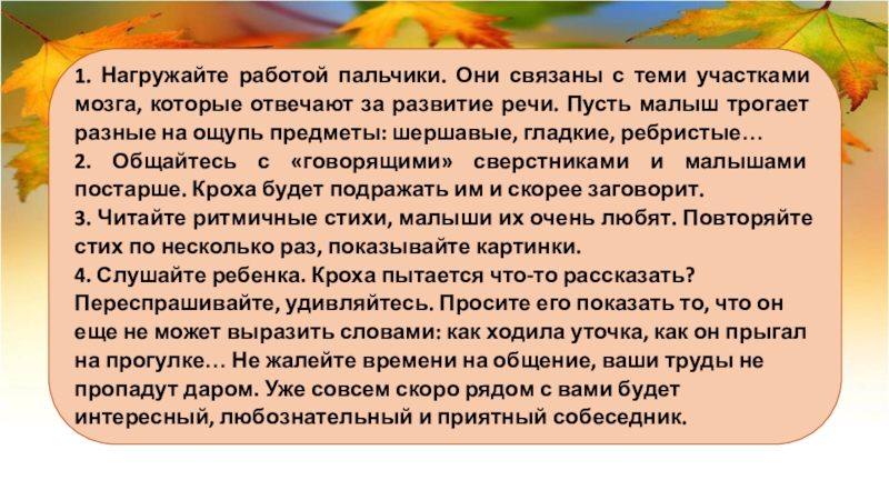 Значит главное – это не просто говорить, но играть с ребёнком и разговаривать не просто так, а в совместной игре. Для этого подходят кубики, пирамидки, мячики, машинки, картинки и многие другие предметы с которыми можно заниматься вместе.