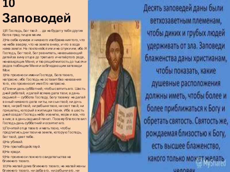 10)Не желай дома ближнего твоего; не желай жены ближнего твоего, ни раба его, ни рабыни его, ни вола его, ни осла его, ничего, что у ближнего твоего.