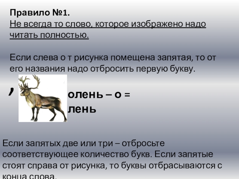 Если запятых две или три – отбросьте соответствующее количество букв. Если запятые стоят справа от рисунка, то буквы отбрасываются с конца слова.