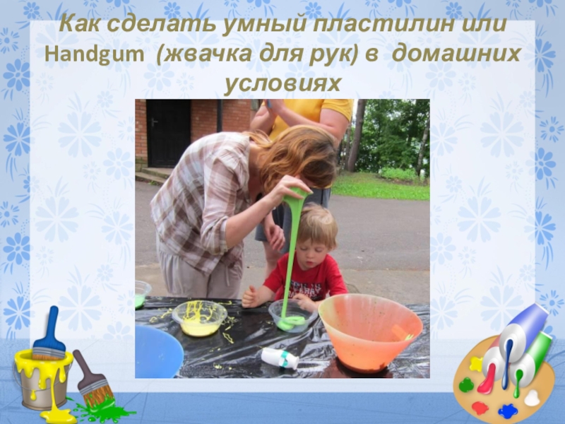 Слайд 12Как сделать умный пластилин или Handgum (жвачка для рук) в домашних