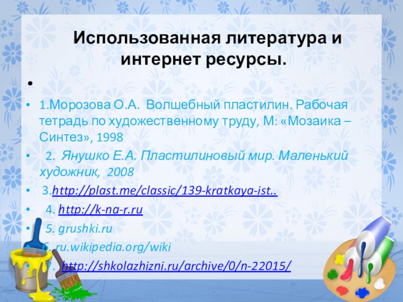 1.Морозова О.А. Волшебный пластилин. Рабочая