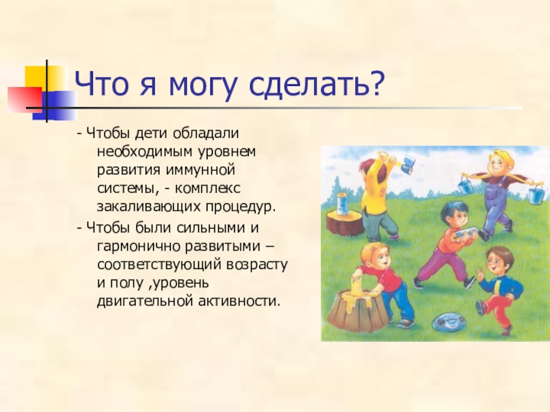 Что я могу сделать? - Чтобы дети обладали необходимым уровнем развития иммунной системы, - комплекс закаливающих процедур.-