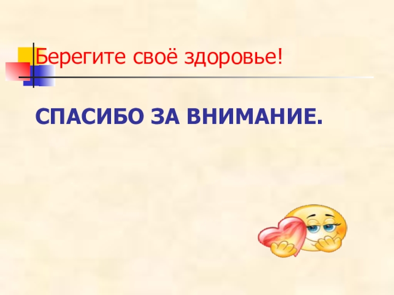 СПАСИБО ЗА ВНИМАНИЕ.Берегите своё здоровье!
